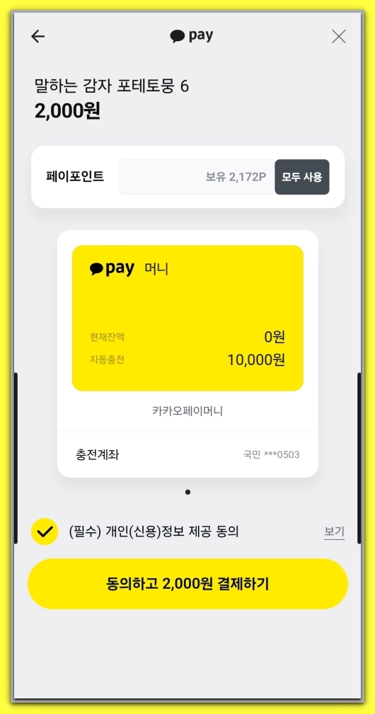 - 카카오페이머니와 페이포인트를 함께 사용할 경우 페이머니 서비스에 가입해 주세요.