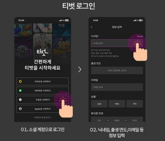 - 로그인 후, 회원가입 정보를 입력합니다. 이는 닉네임, 출생 연도, 이메일, 성별, 휴대폰 번호 등입니다. 특히, 휴대폰 번호는 당첨자 추첨 대상에서 제외되지 않도록 반드시 입력해야 합니다.