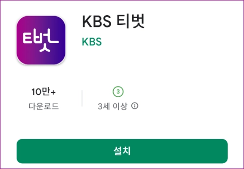 - 갤럭시폰(안드로이드): 구글 플레이 스토어에서 'KBS 티벗'을 검색하여 설치합니다.
