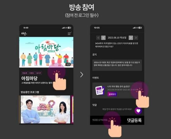 이제 티벗 앱을 설치하고, 아침마당의 다양한 코너에 참여하여 재미있는 시간을 보내보세요!